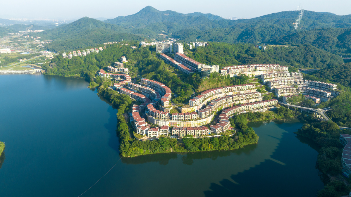 金坑水库旁边的两个楼盘,同地不同命,御湖名邸都是千万别墅,山另一边的澳洲山庄缺烂尾了20年。